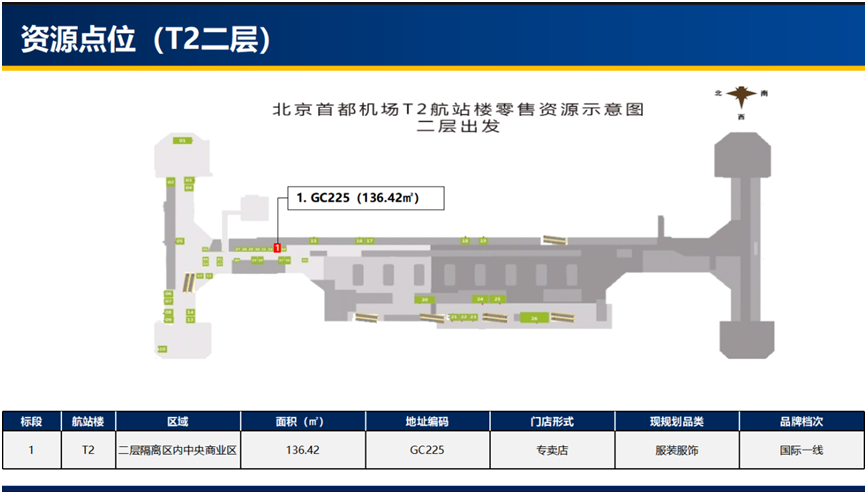 北京首都国际机场航站楼内服装服饰品类零售资源现面向社会公开招商。此次的招商零售资源共1个店面,1个标段,总面积约为136.42平米。